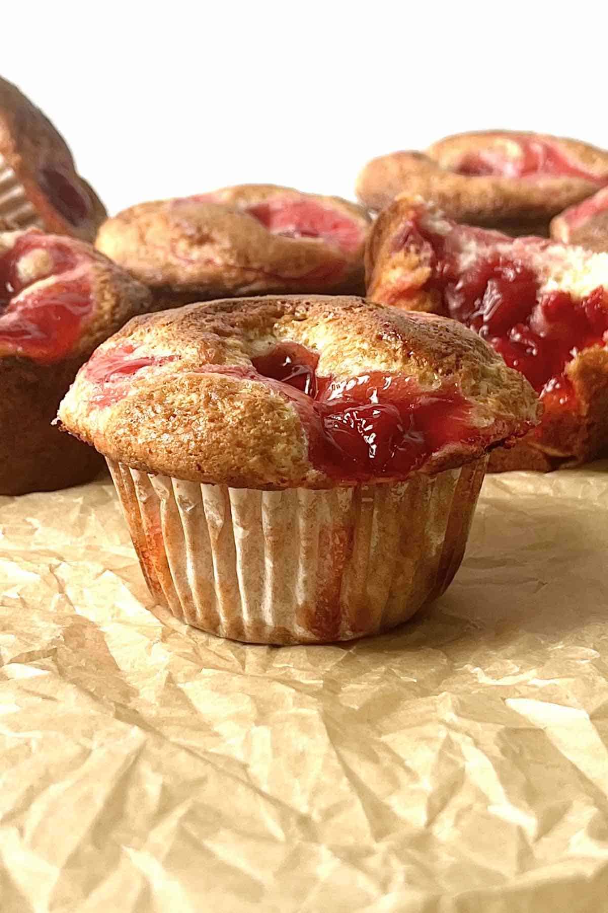 These quick and easy 3 ingredient cherry muffins with cherry pie filling are soft, fluffy, moist, and delicious! The best pick-me-up snack, grab-and-go breakfast and a tasty dessert.