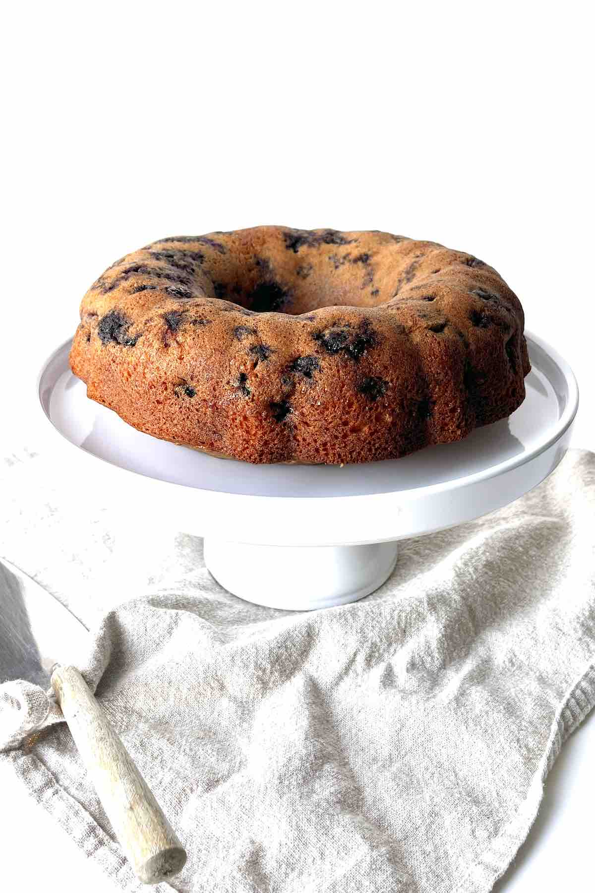 If using frozen blueberries, you do not need to thaw before adding them to the cake batter. They can be added straight from the freezer while still frozen.