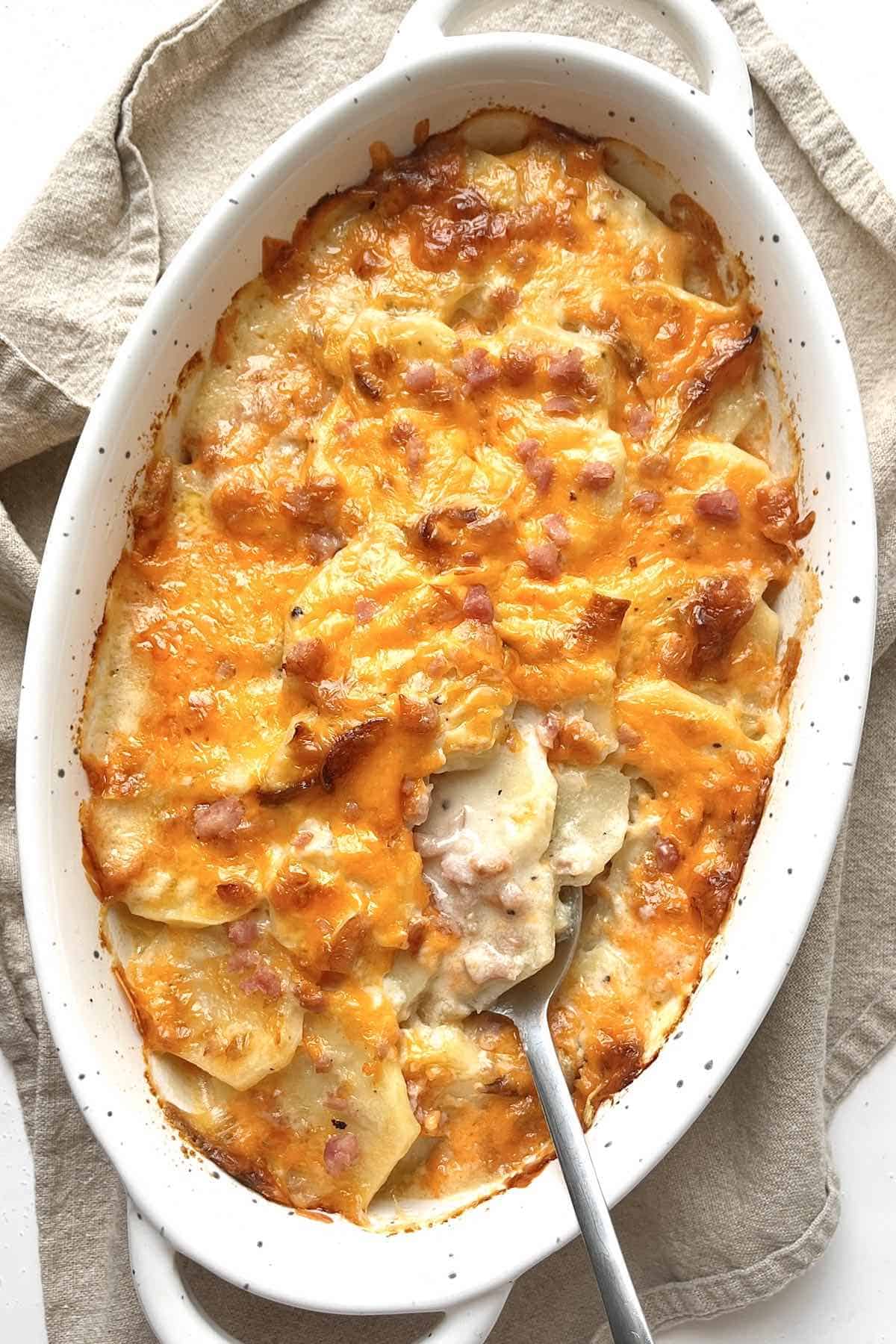These cheesy scalloped potatoes and ham are a tasty side dish that's easy to make and super comforting!
